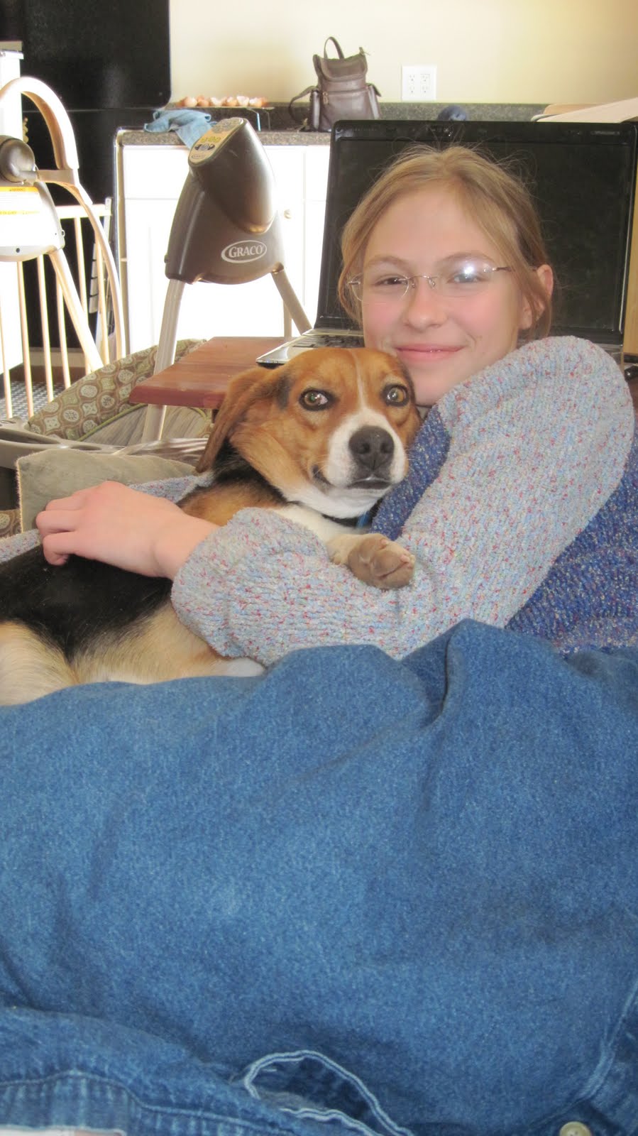 He liked to sit on my rocker on the front porch. He always greeted us when we arrived home and just last week when I was training Chazaq (my 1 yrd old) to come when called out side...out of no where, there was my beagle at my feet, all proud of himself because he heard my call (but did not realize it was for the baby!!) Of course I praised him, as did Hailey. We recalled how far he had come in his training and behavior since he first arrived on our farm. We always said, he chose us...since he was a stray.